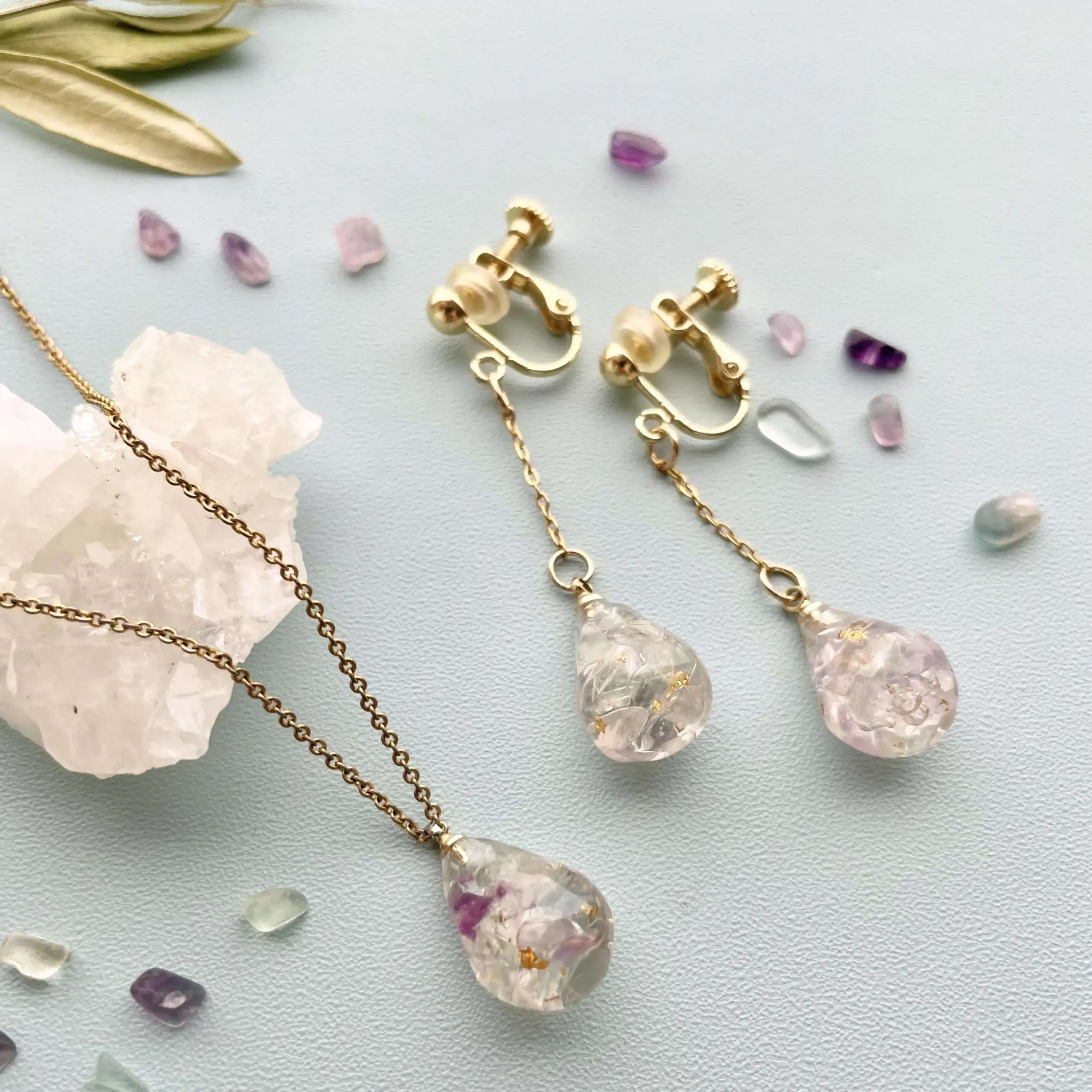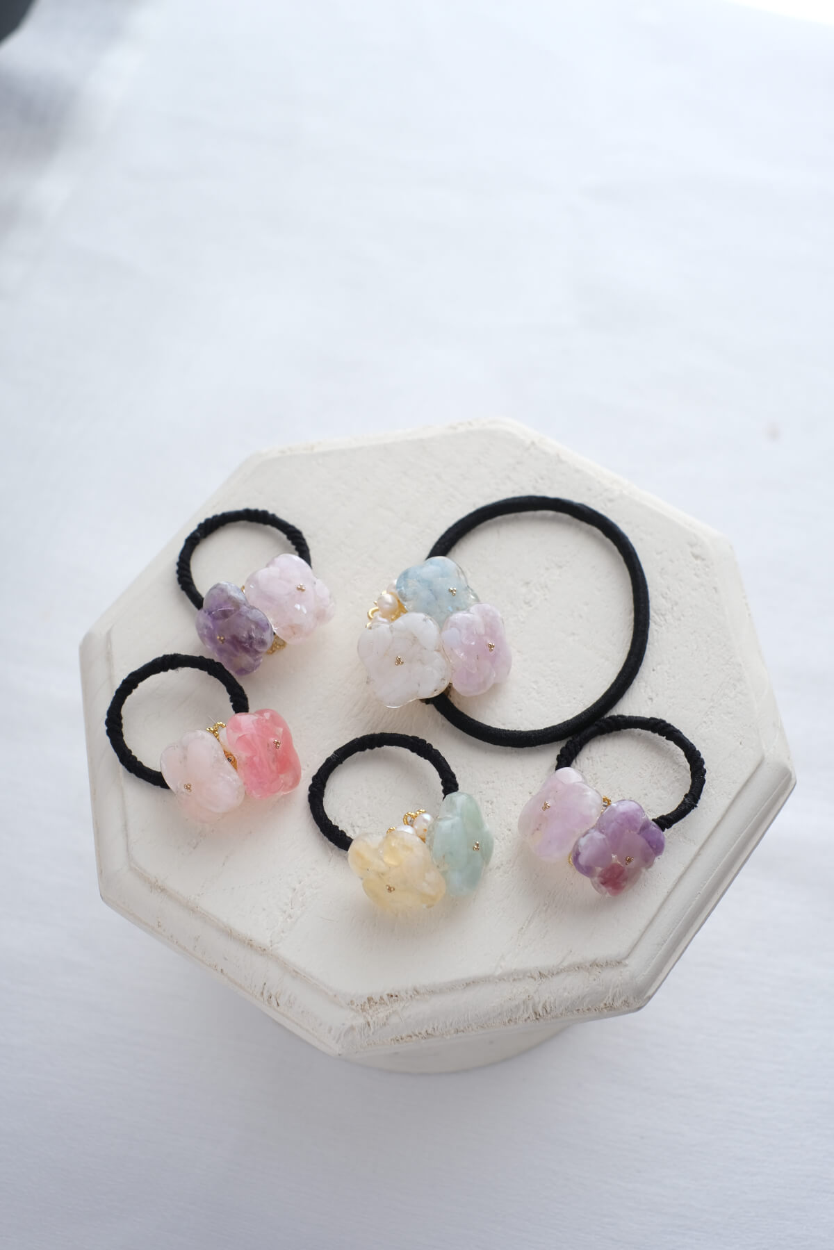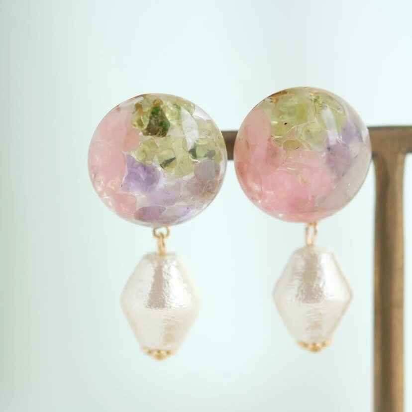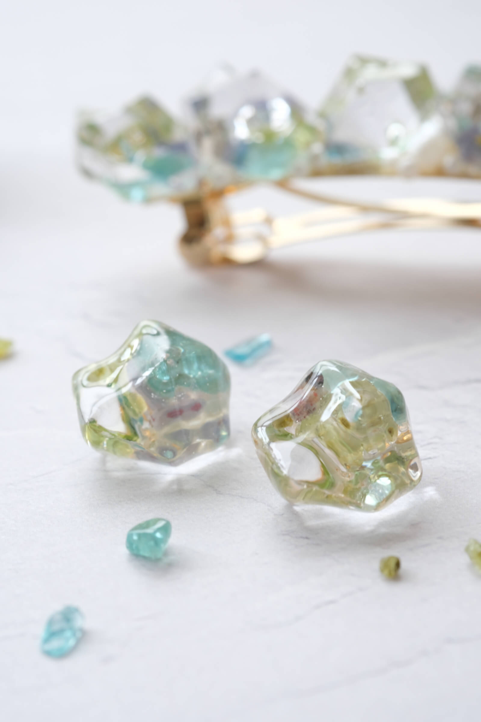 天然石をレジンで加工することで、耳飾りやネックレスはもちろん、ヘアアクセサリーやリングなど、色々なアイテムを作ることが可能です。