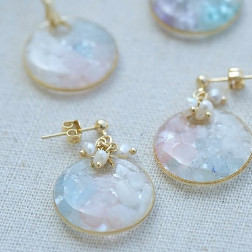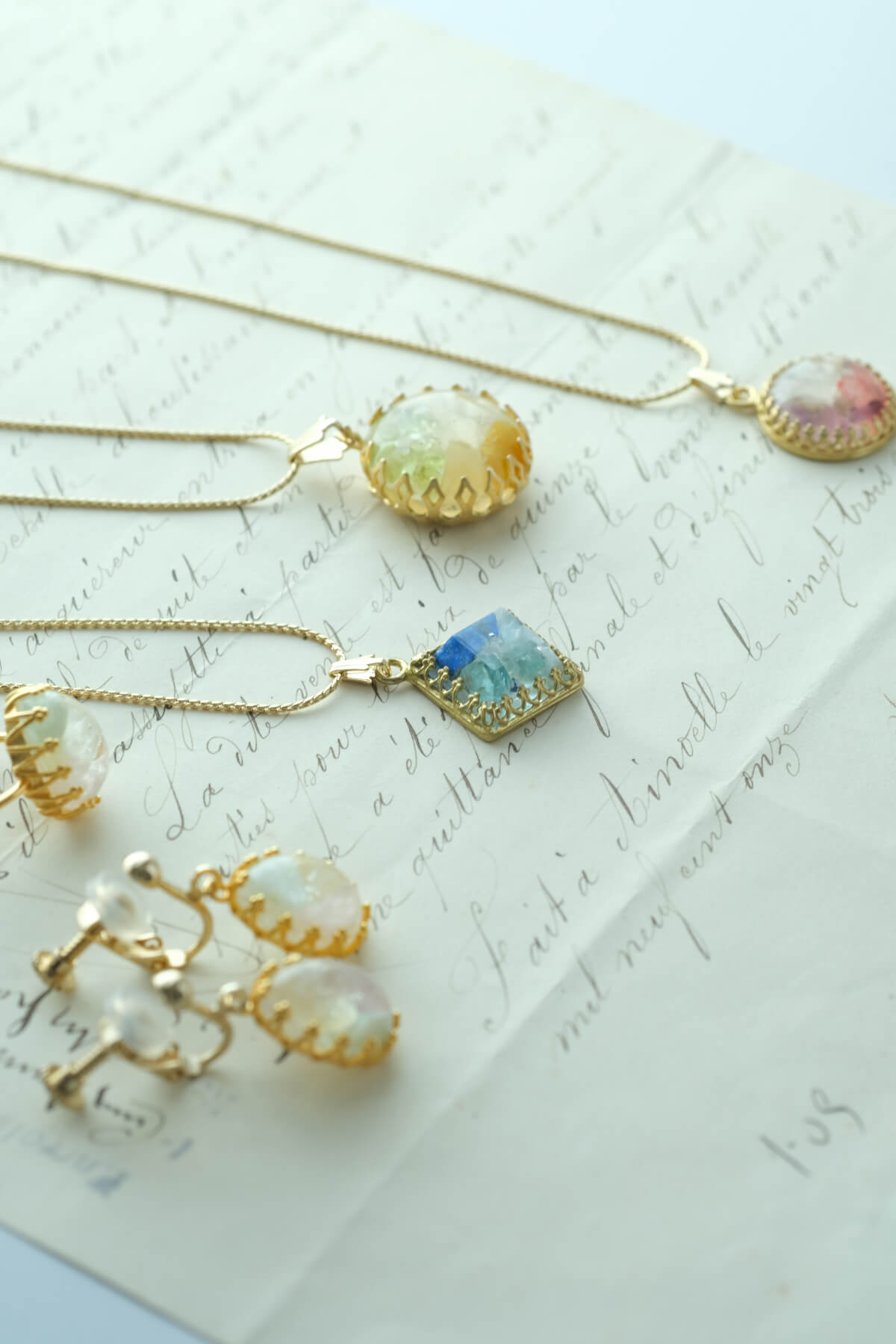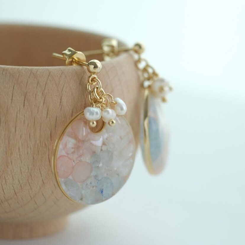 レジェムストーン®︎アクセサリーとは、樹脂(レジン)に天然石(ジェムストーン)を独自の技法で詰め込んだレジンアクセサリーです。