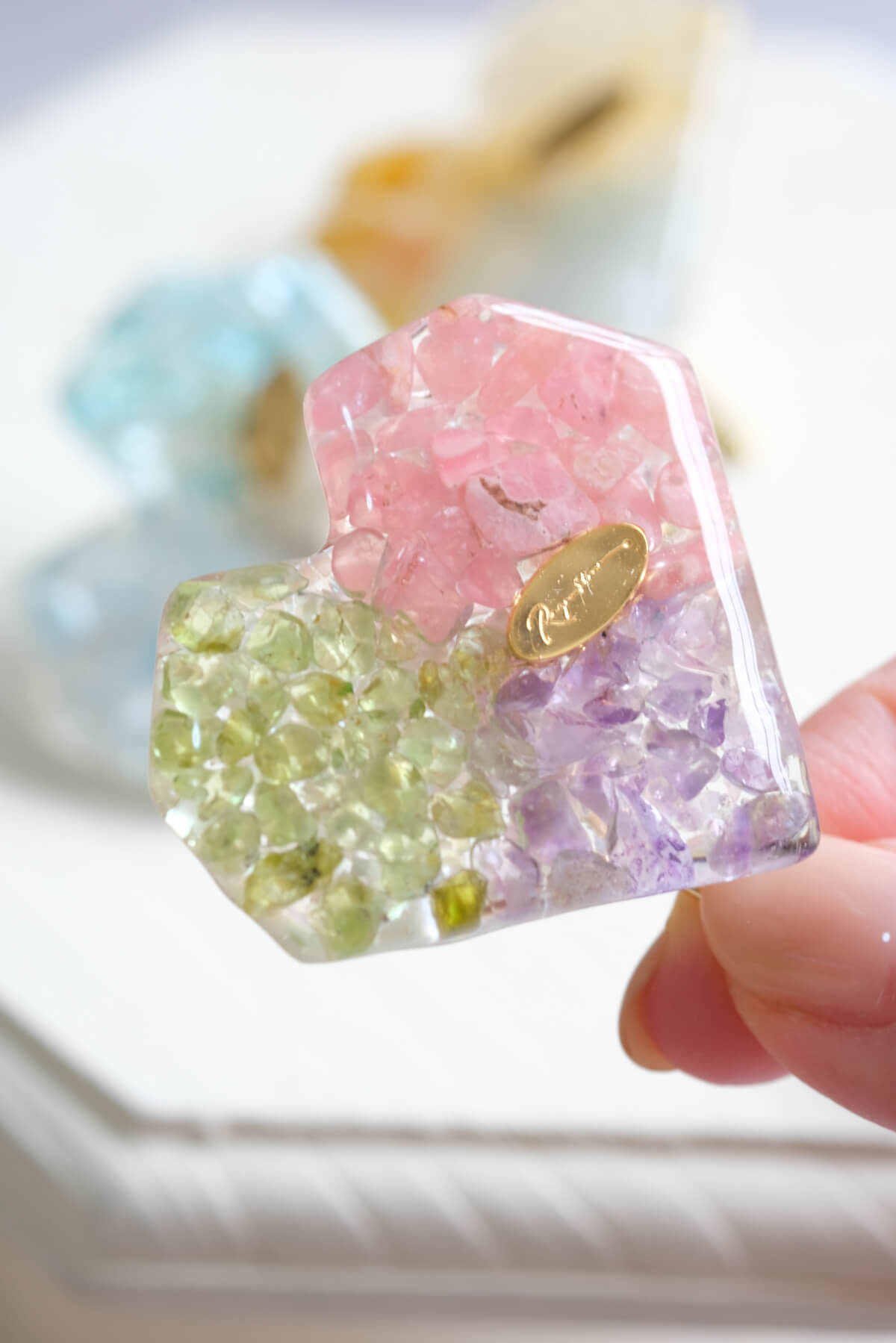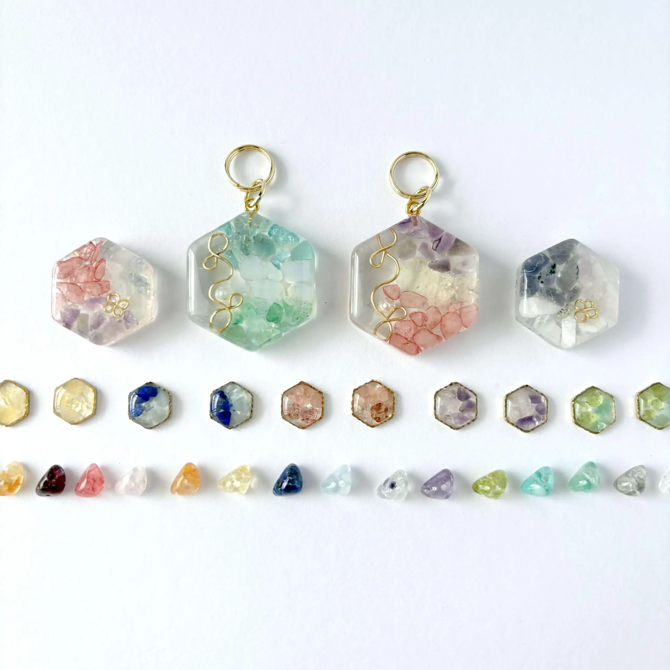 天然石はひとつひとつ異なる個性を持ち、自由な素材であるレジンと出会うことで、唯一無二の作品が生まれます。