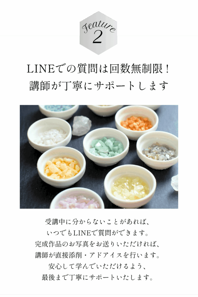 期間中は何度でもLINEで質問を受け付けしっかりとフォローいたしますので、ハンドメイド未経験の方もご安心ください。