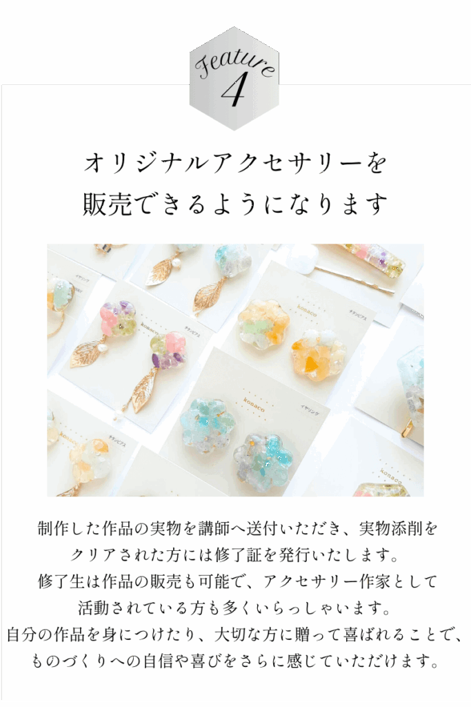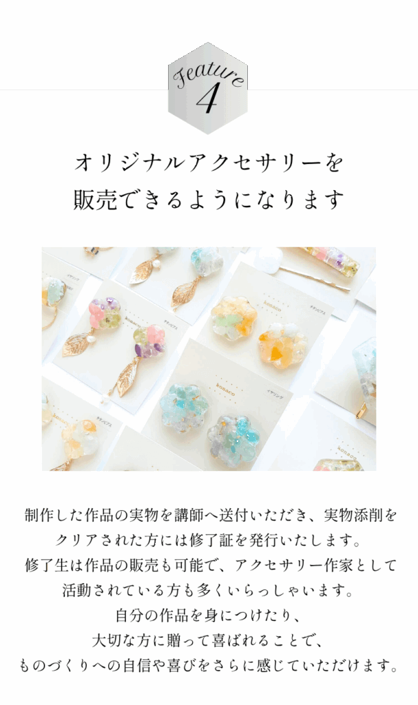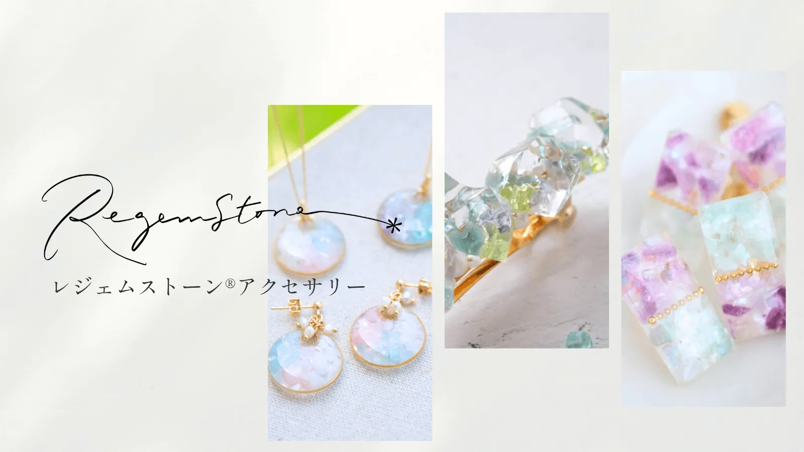 2021年からは、レジン(=樹脂)と天然石を独自の技法で融合させた、「レジェムストーン®︎アクセサリー」オンライン講座を開講。