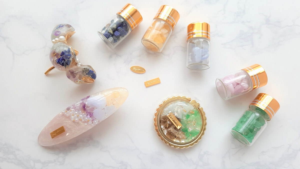 講座のレッスンキットはスムーズに作品作りをするためにいろんな工夫をしています。キットが届くたびにさざれの種類が増えるのも楽しい♪レッスン2は8本の動画で、合計85分になりました。10月スタート生さんへの初回キットは本日〜明日発送中です♪ web講座