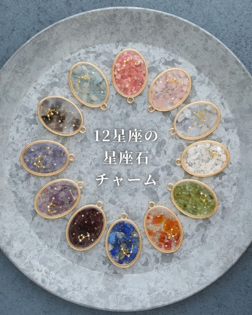 12星座に結び付いた星座石(せいざせき)を主役にした、静かにきらめくチャームです✦