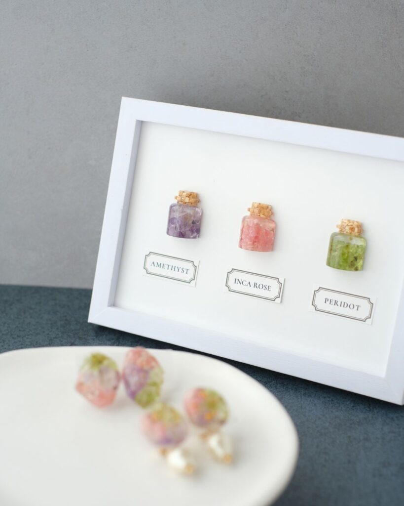 さて、ホビーショーではレジンと天然石のきらめきを気軽に楽しめる3種類の制作キットをご用意いたします✦✦