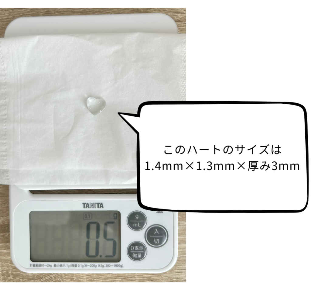 つまり、このハート2個分でちょうど1gくらいになります。