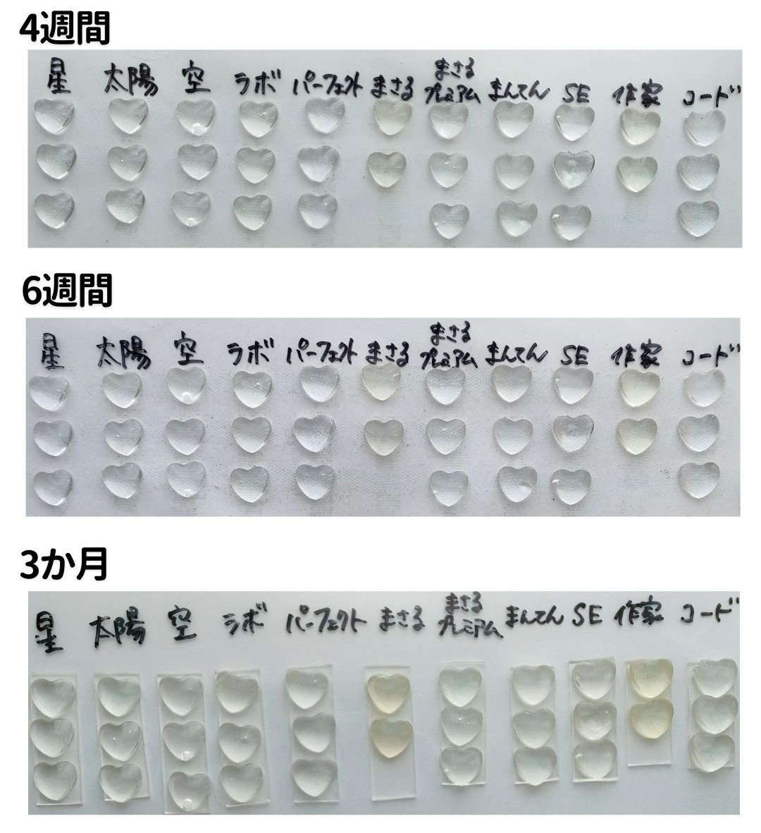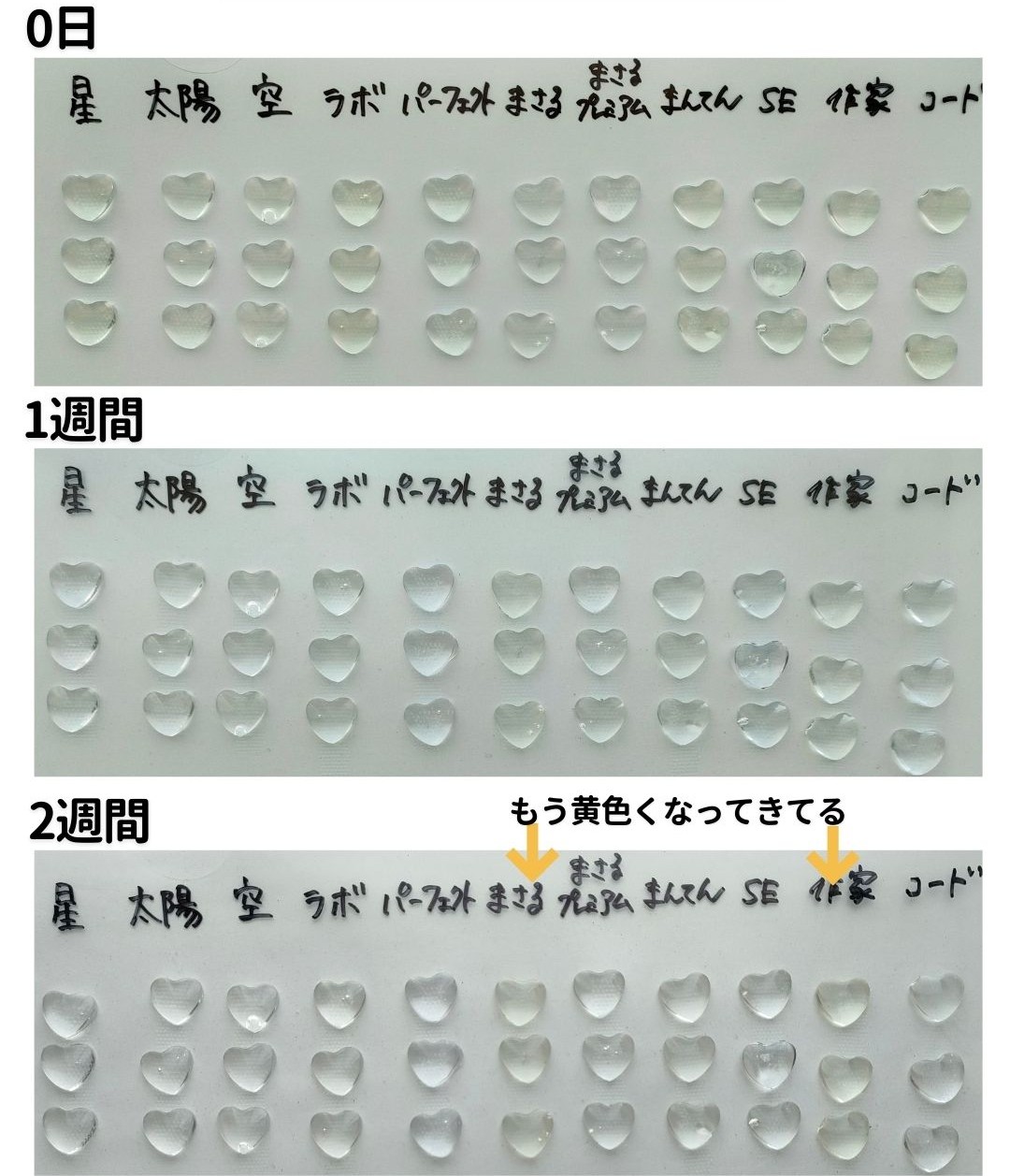 今回の実験で最も早く変化が現れたのは、「まさるの涙」と「作家のためのレジン」でした。