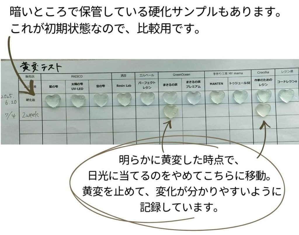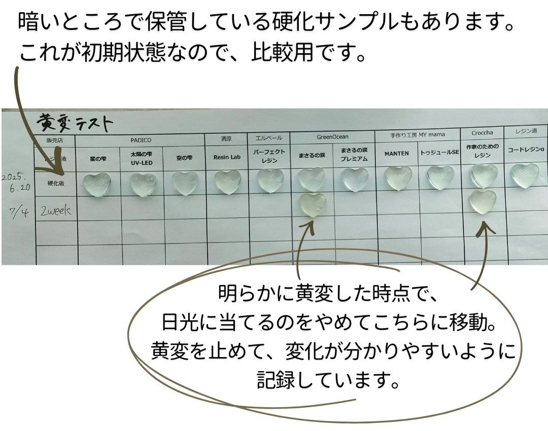 まだ黄変が始まっていないレジン液が多いため、このまま日光浴テストを継続します!