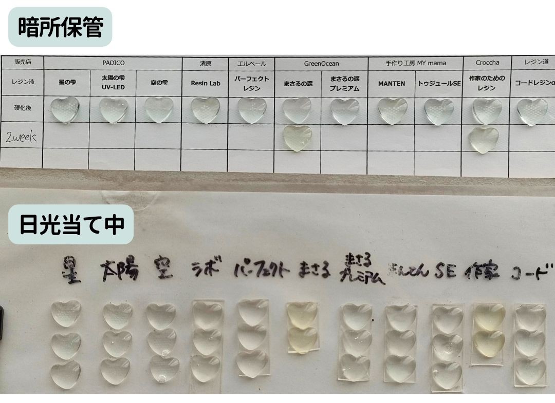 レジン液名2週間後の状態6ヶ月後の状態